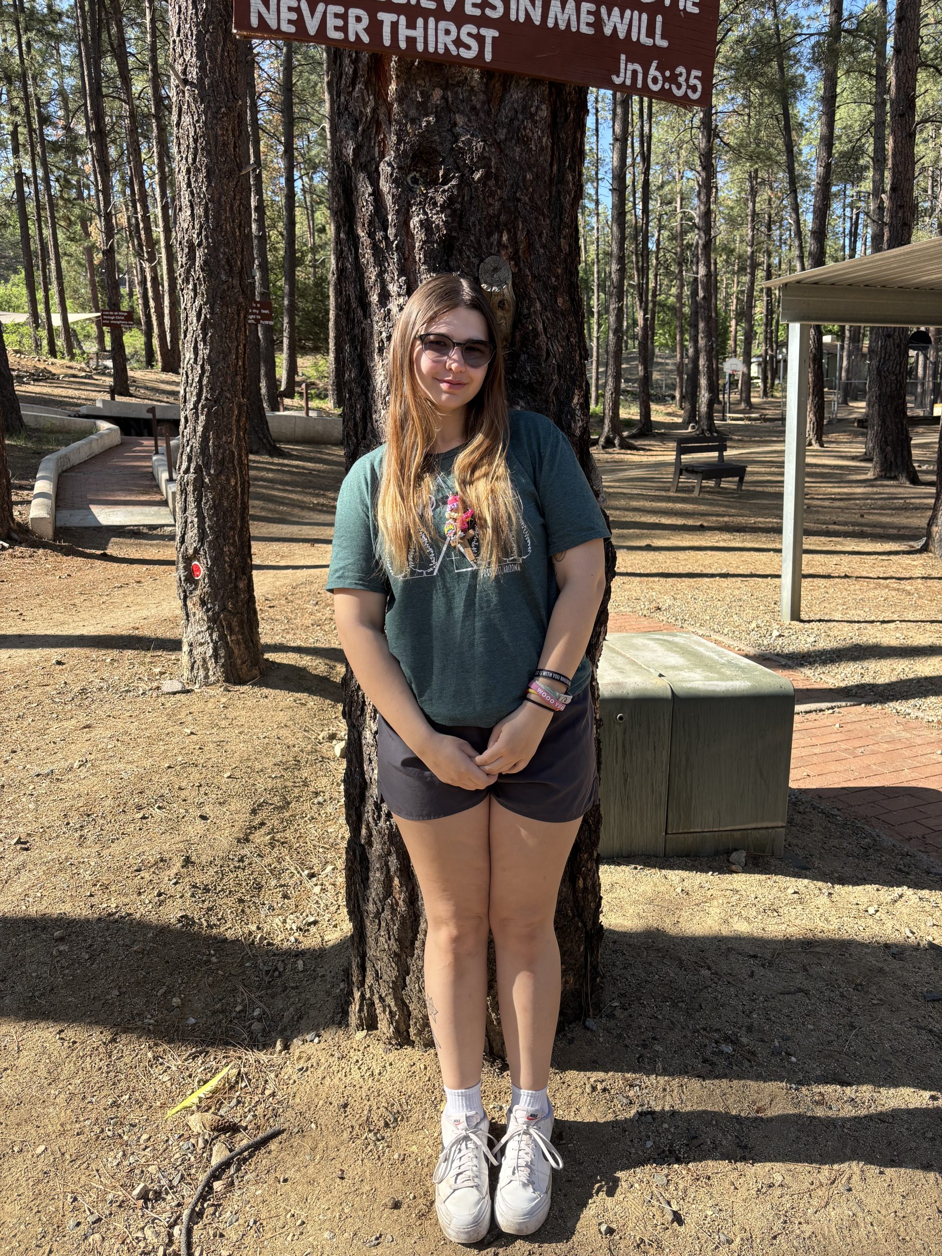 Meet Theia! Her full name is Thelema Altheia, which means “Desires what is true,” in Greek. She has been here at camp for the last 4 years, serving as a Senior Counselor, Kitchen Staff, and Support Staff. She is in a new role this year, serving in a different position every week! We sincerely appreciate her help and can’t wait to see how she thrives in every role.